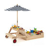 ● One Set, Many Moments: This 2-in-1 outdoor playset brings a pull-out sandbox, a picnic table, and a removable umbrella into one smart backyard station. The benches double as the sandbox cover, so sand stays cleaner between adventures. It fits real-life days with ease, from digging and building to snacks, crafts, or a quick rest in the shade.
