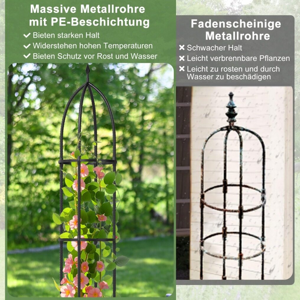 Sturdy and Reliable Material: These garden trellises are constructed of solid metal tubes, providing a reliable support system that will withstand the elements year after year. Furthermore, the tubes are coated with PE, ensuring good resistance to rust and high temperatures.