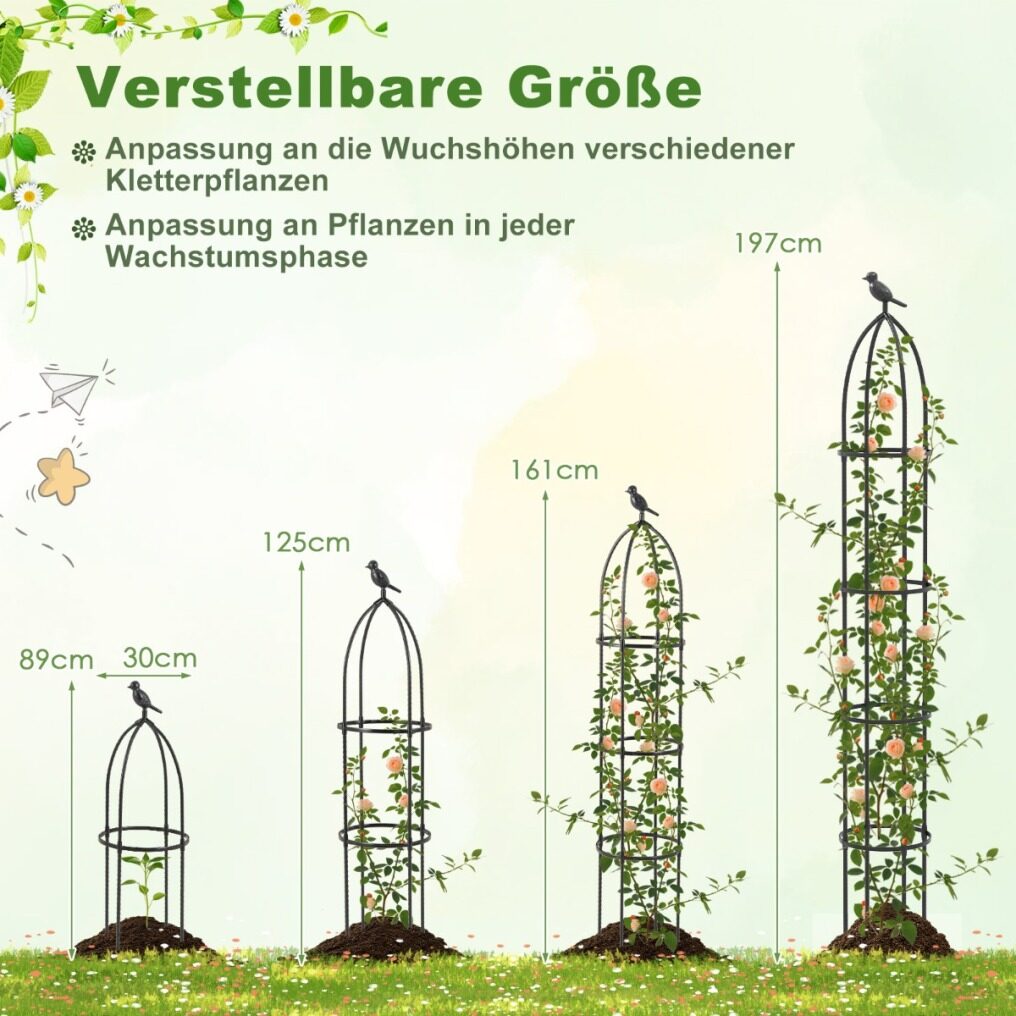 Adjustable Size: Each plant trellis can be easily customized in 4 heights (89/125/161/197 cm), meeting the growth heights of various climbing plants. This flexibility makes it ideal for everything from small seedlings to mature plants, providing support at every stage of growth.
