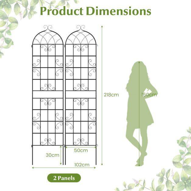 ● Enhanced Growth Support: Experience the benefits of a 7 ft/218 cm metal garden trellis, featuring 2 expansive panels, each measuring 20" x 86"/50 x 218 cm (L x H). This design not only maximizes sunlight capture but also provides ample space for climbing plants and vines to grow vertically and robustly.