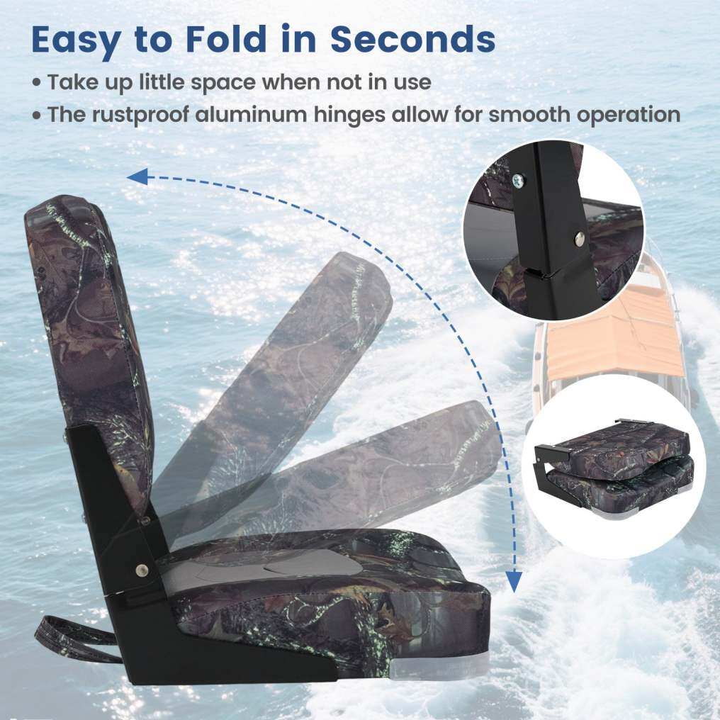 ● Reliable and Weatherproof Material: Crafted from marine-grade PVC fabric and premium PVC leather, these boat seats are engineered to withstand long-term rigors of a marine environment. Additionally, the unique camouflage patterns add a touch of style to your water adventures.