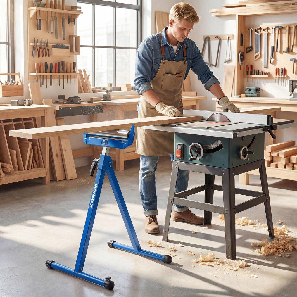 ● Smooth Roller Performance: The foldable outfeed stands feature smooth roller heads to reduce friction during feeding. As such, your workpieces track cleanly across the support, helping you keep a steady pace and cleaner cuts on the table saw or planer.