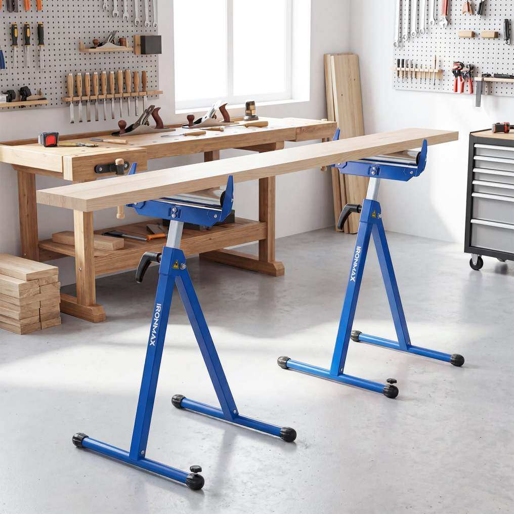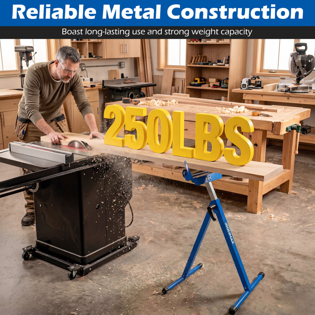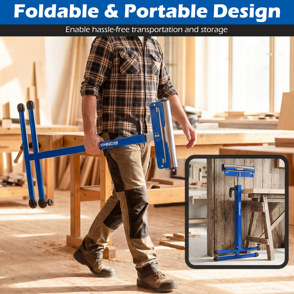 ● Reliable Metal Construction: Constructed from heavy-duty metal, these folding roller stands boast long-lasting use and strong weight capacity. Each stand supports up to 250 lbs, allowing you to handle thicker hardwood, long shelving boards, and bulky panels with confidence.