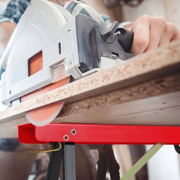 Non-Slip Work Surface: The top of each sawhorse is treated with a non-slip layer to provide a safe working surface and prevent materials from slipping. The sophisticated design also prevents scratches during use, thus increasing safety and efficiency in woodworking.