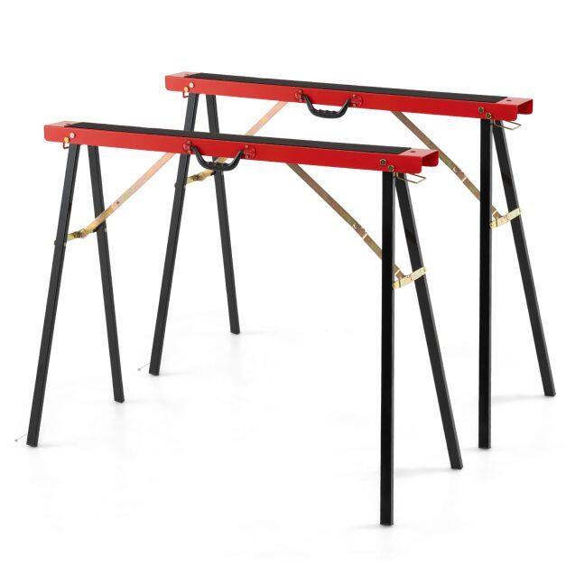 Portable & foldable design: Each sawhorse weighs only 4 kg and features an ergonomic handle. The legs fold easily by loosening the metal hinge clip, making these sawhorses extremely space-saving and easy to transport.