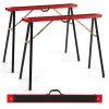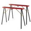 Experience ultimate convenience with this two-pack of portable sawhorses. Crafted from sturdy galvanized metal, the two triangular-shaped sawhorses offer a combined weight capacity of up to 375 kg, providing strong support for heavy-duty work. Each sawhorse features a non-slip work surface that keeps materials safe and scratch-free. Furthermore, the pre-drilled holes allow for secure fastening of workpieces with screws. Their compact folding size and light weight make them effortless to store and transport. With no assembly required, these sawhorses, with their high-quality details, are ready to tackle any task.