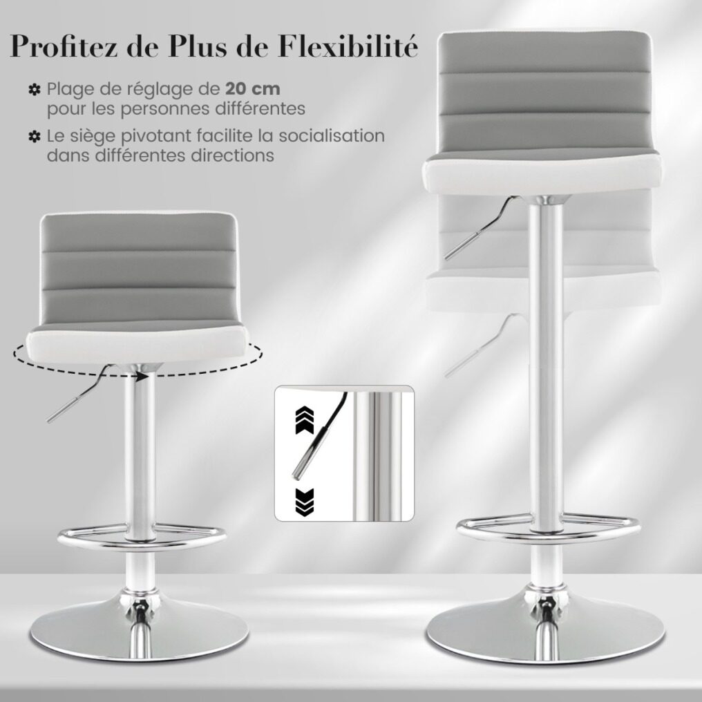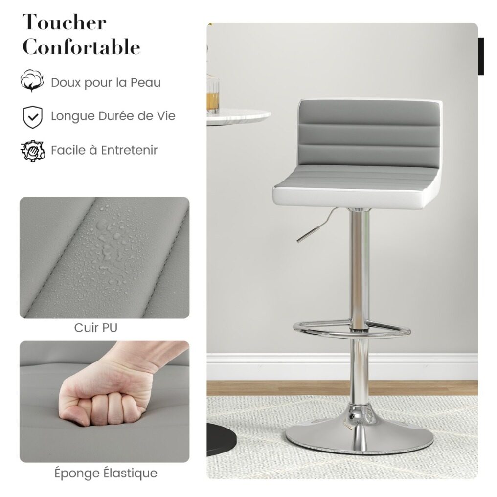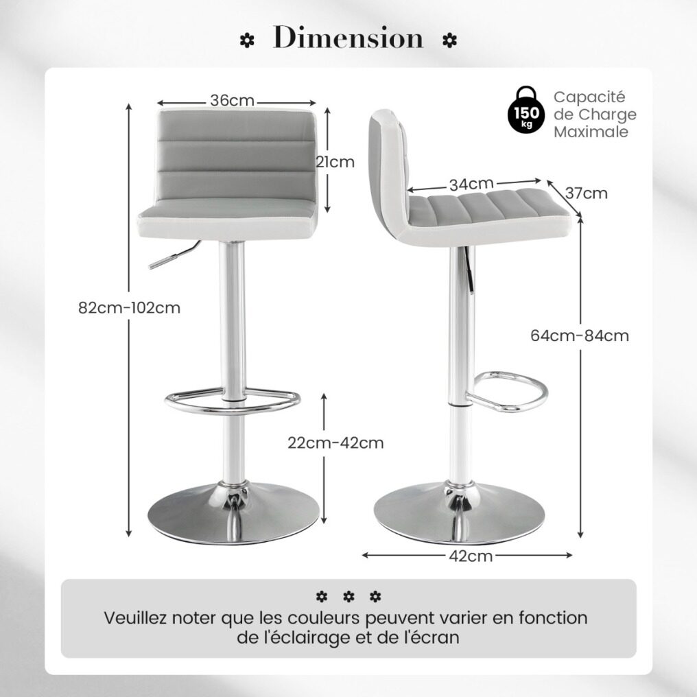 To immerse yourself in comfort, each bar stool features an 21cm high padded backrest for reliable lumbar support, while the cozy seat distributes hip pressure to relieve fatigue. Crafted from high-quality materials such as PU leather, these bar chairs are built to last, resisting wear and fading. The elastic sponge interior will offer comfy touch. Enjoy more flexibility! With an adjustable swivel design, you can easily customize the seat height from 64cm to 84cm and enjoy conversations with friends from any angle. The sturdy metal base can support up to 150 kg and is equipped with an anti-slip rubber ring for added stability. With their sleek and timeless design, these bar stools effortlessly blend into any decor. Its assembly is a breeze with the included user-friendly manual.
