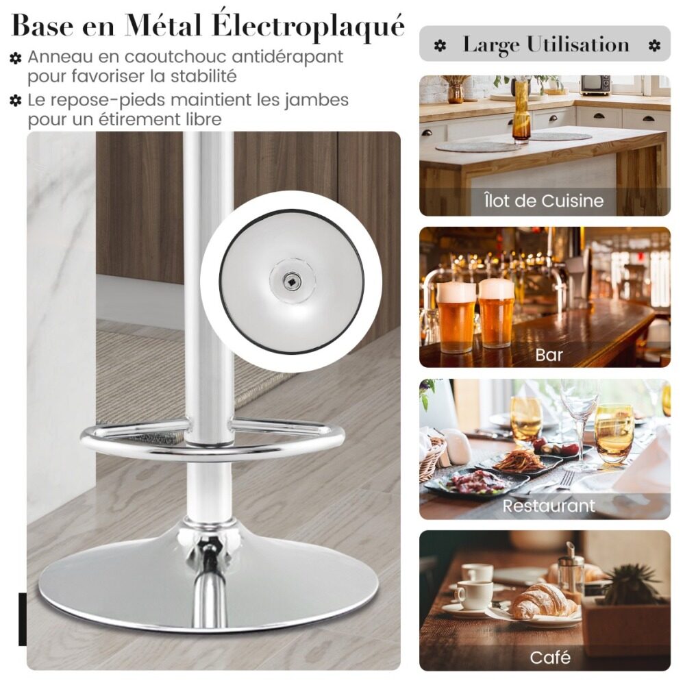 Stable Metal Structure: Its electroplated metal base can support a large weight up to 150 kg, while being more durable and scratch resistant. Plus, it has an anti-slip rubber ring to safeguard stability. Each bar stool has a footrest, allowing you to find a preferred sitting position in different places.