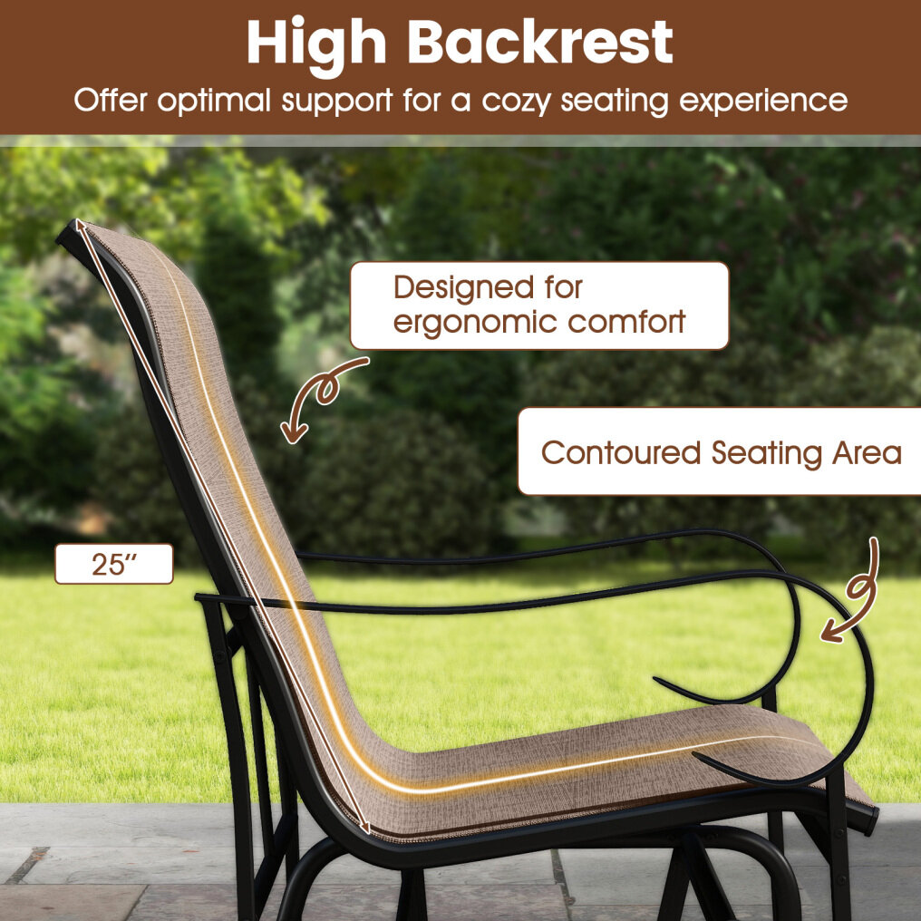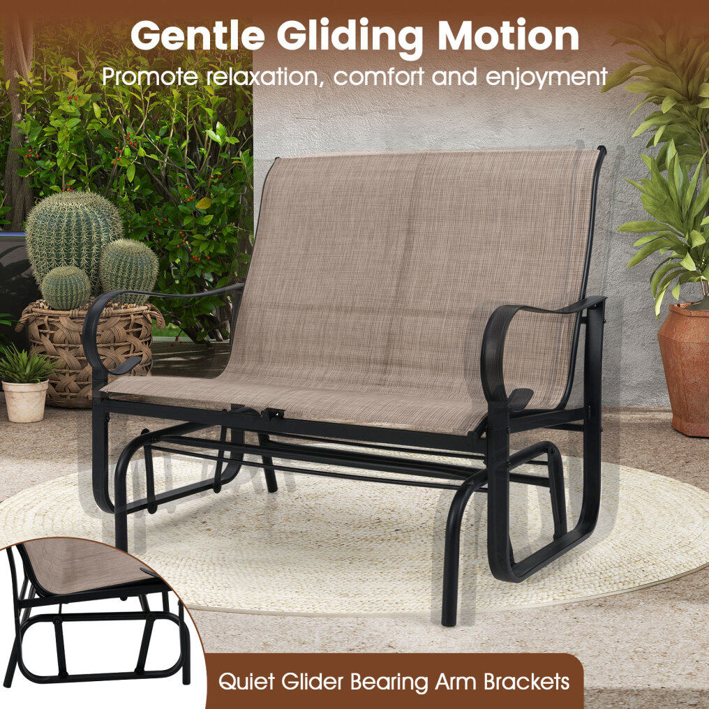 ● Smooth Gliding for Perfect Ease: Designed with premium glider bearing arm brackets, this patio rocking loveseat chair offers quiet and seamless motion, providing optimal relaxation for you and a loved one.