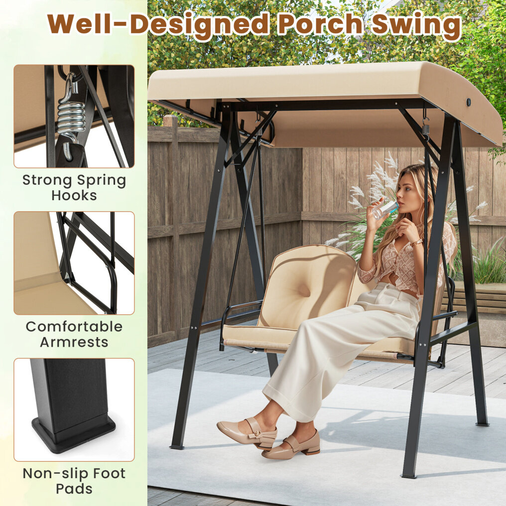 ● Cozy Sitting Experience: This porch swing comes with 2 intergraded seat and back cushions and a gentle swaying motion for a relaxed seating experience. Each cushion features 3" thickness and soft and elastic fillings for optimal comfort