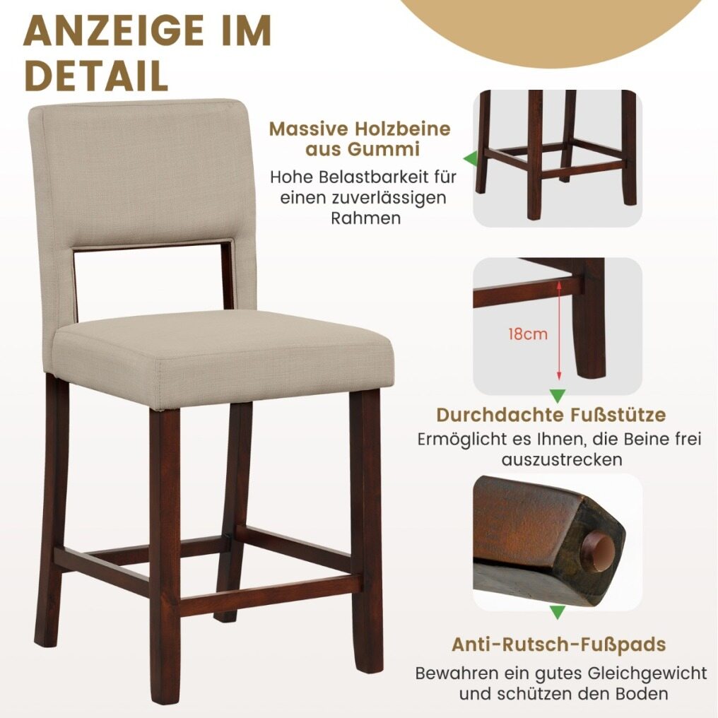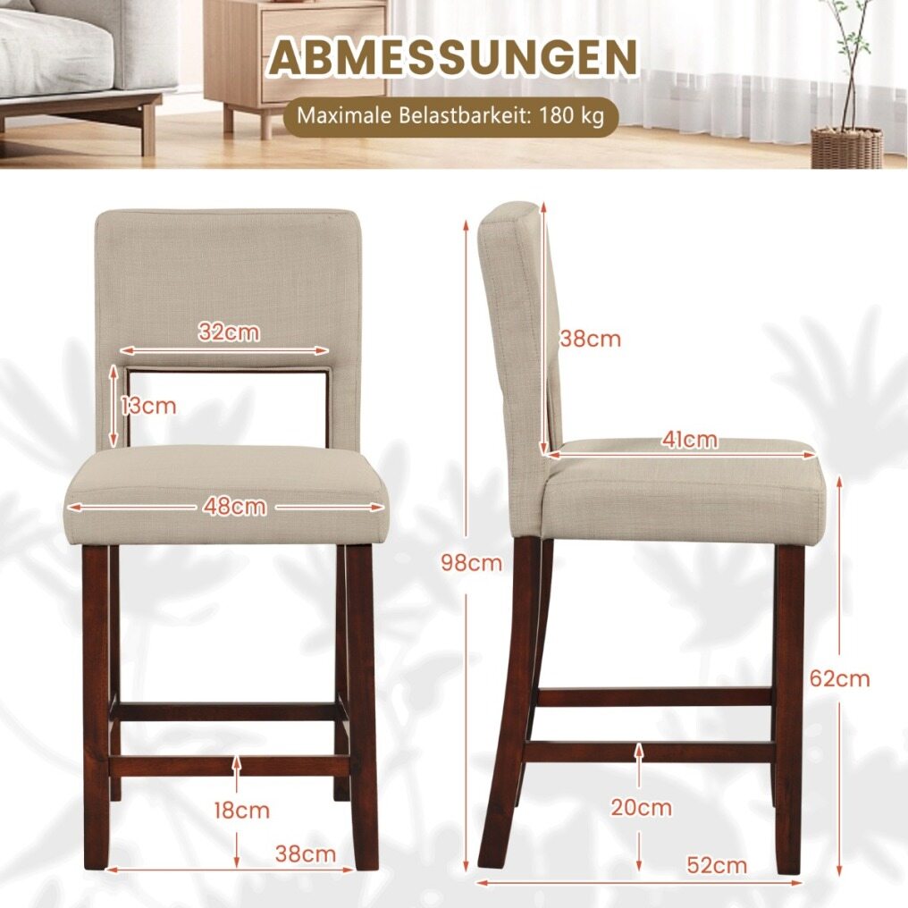 ● Rubber Wood Support: Each counter height chair has strong legs, made of natural rubber wood, to promote overall sturdiness abd load capacity up to 400 lbs. Also, it is designed with anti-slip foot pads, which prevent slipping and protect the floor.