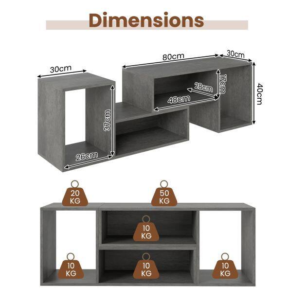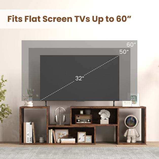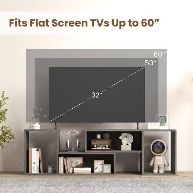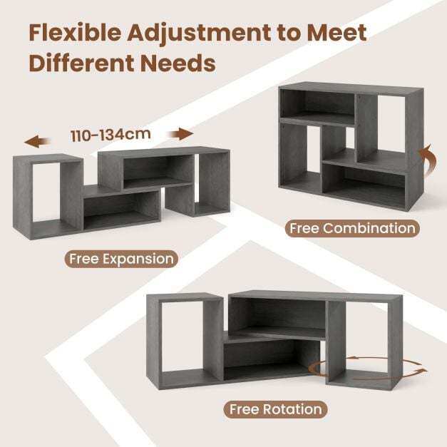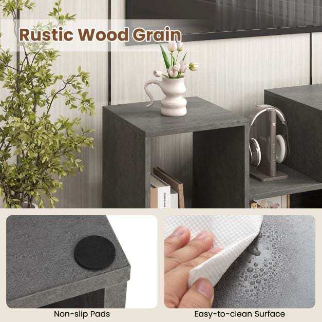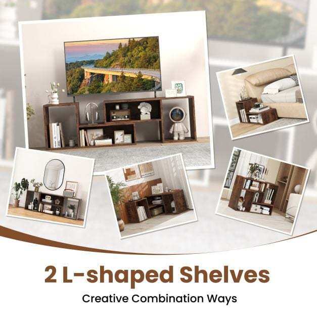 Transform your space with the ultra-adaptable TV console stand! Unleash endless possibilities with this smartly designed unit featuring 2 customizable L-shaped shelves ready to fit any room layout. Its cube shelves maximize your storage with abundant space, including discreet units for a clutter-free zone. Ideal for mega-screens, the media console table robustly supports up to 60” TVs, blending functionality with chic design! Not just for TV—morph it into a trendy bookcase or a classy nightstand with its versatile rotation features. Crafted from premium materials and equipped with non-slip pads, this entertainment center is built to impress and last. Don’t miss out, make it yours today and elevate your home!