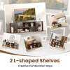 Free Combination Modular Design: This TV console stand includes 2 L-shaped shelves that can be arranged in various layouts to perfectly match the room’s setting. Its modular concept allows for customization and adaptability to different spaces and needs.