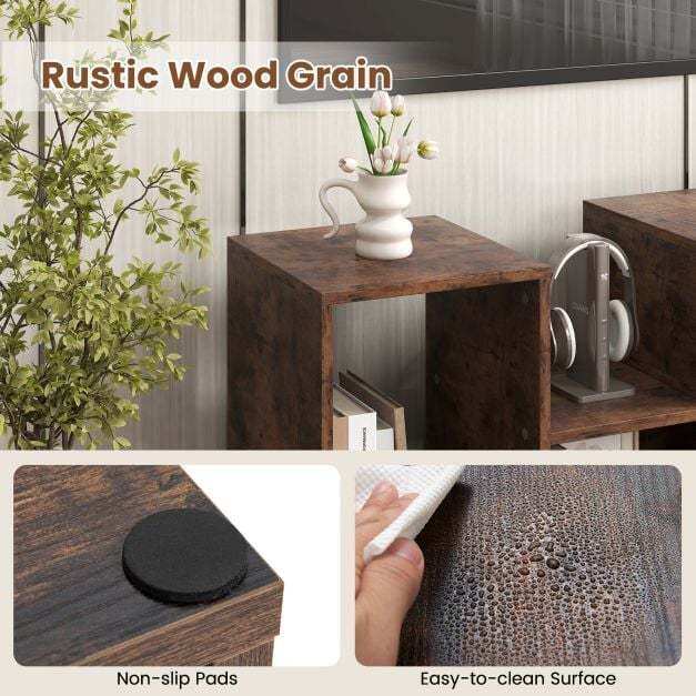 Spacious Storage Solutions: The TV console table provides ample storage space with 4 cubes, 2 of which have closed backs, ideal for storing media supplies, books, or other items. This design ensures that your entertainment area remains neat and clutter-free.
