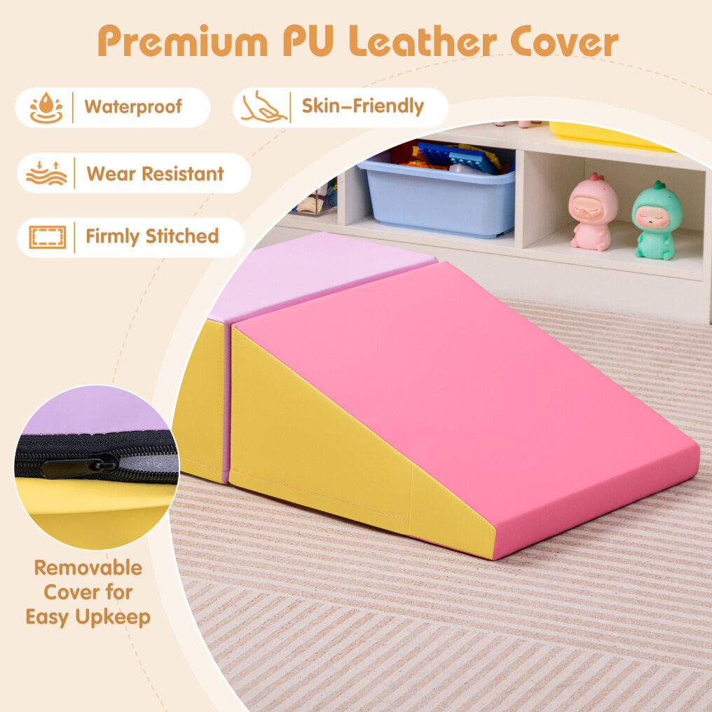 ● Product Specifications: The assembled step and slide measures 40" x 20" x 10" (L x W x H). Designed for convenience, this soft foam climber set is lightweight and portable, making it easy to move from room to room for playtime anywhere.