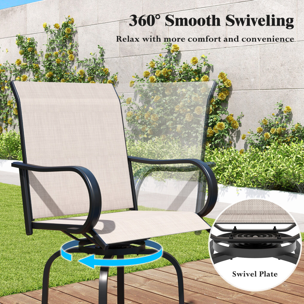 ● Various Available Places: With premium weather resistance and comfortable sitting experience, the bar stool is a perfect addition to both indoor and outdoor occasions, such as backyard, poolside, balcony and so on. Enjoy chatting with your best friend on these two patio swivel bar stools during leisure time!