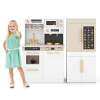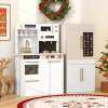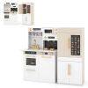 2 Pieces Kids Kitchen Playset: The 2-piece play kitchen offers a comprehensive play experience with a fully furnished kitchen and a refrigerator, encouraging kids to partake in authentic cooking and food storage activities. Furthermore, it is perfect for group play, which accommodates kids aged 3 and above.