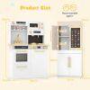 The 2 pieces play kitchen set boasts a fully stocked kitchen and a fridge adorned with interactive educational chart for enriching word exploration and social engagement. Children can embark on culinary escapades, utilizing a microwave, sink, and stove to nurture their imagination and acting aptitudes. Featuring realistic sounds and lights, the chef pretend kitchen set is an immersive toy for your kids aged above 3 years old. Whether for group partners or individual amusement, the play kitchen delivers an engaging and unforgettable learning experience. Tailored for budding chefs, it strikes the perfect balance between recreation and educational merit, making it a standout gift choice for any celebration!