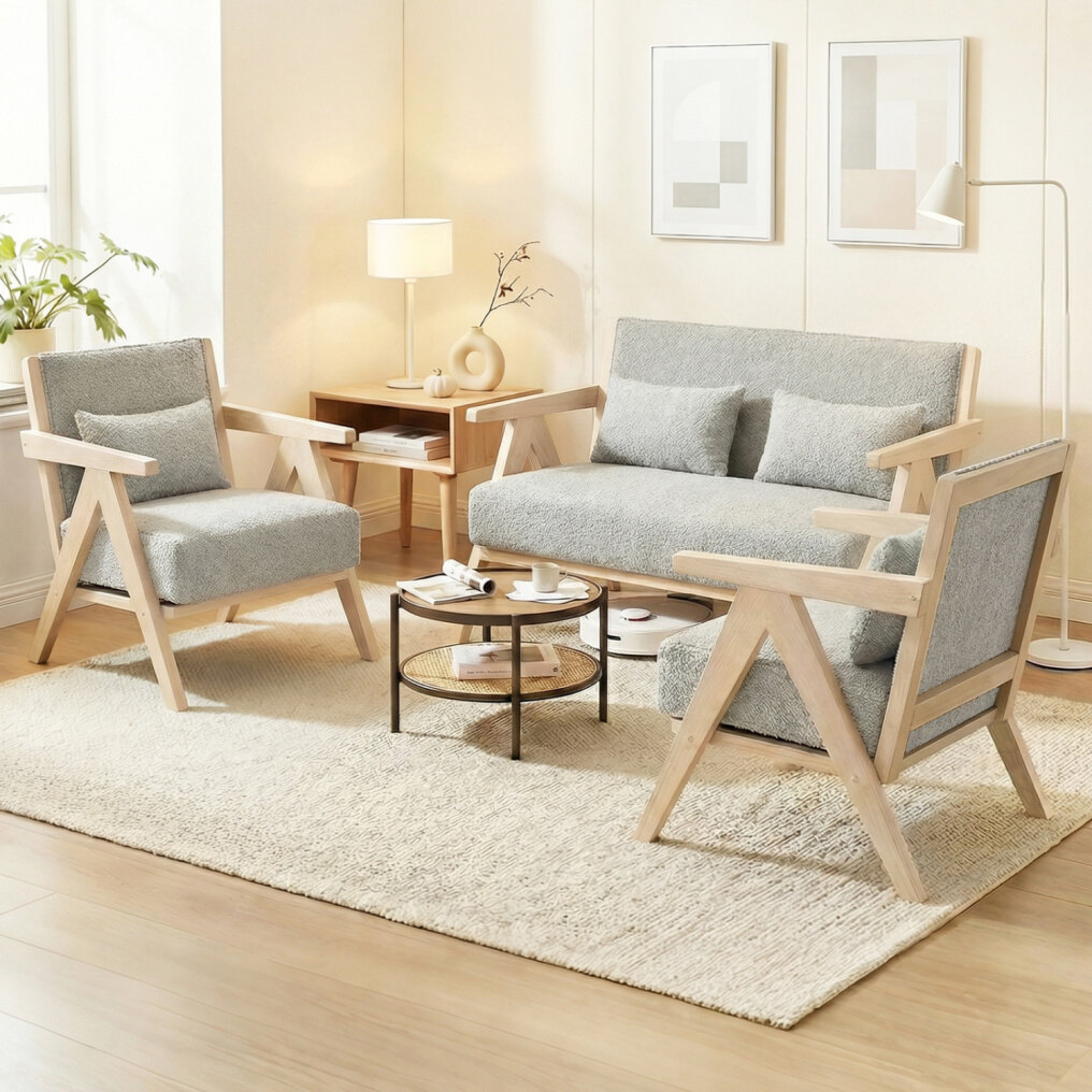 ● 2-Piece Sofa Set: This furniture set includes a single sofa chair and a loveseat, designed for flexible arrangement to suit your space and lifestyle. This compact set is suitable for small living rooms, lounge rooms, or apartments, creating comfortable seating wherever needed.