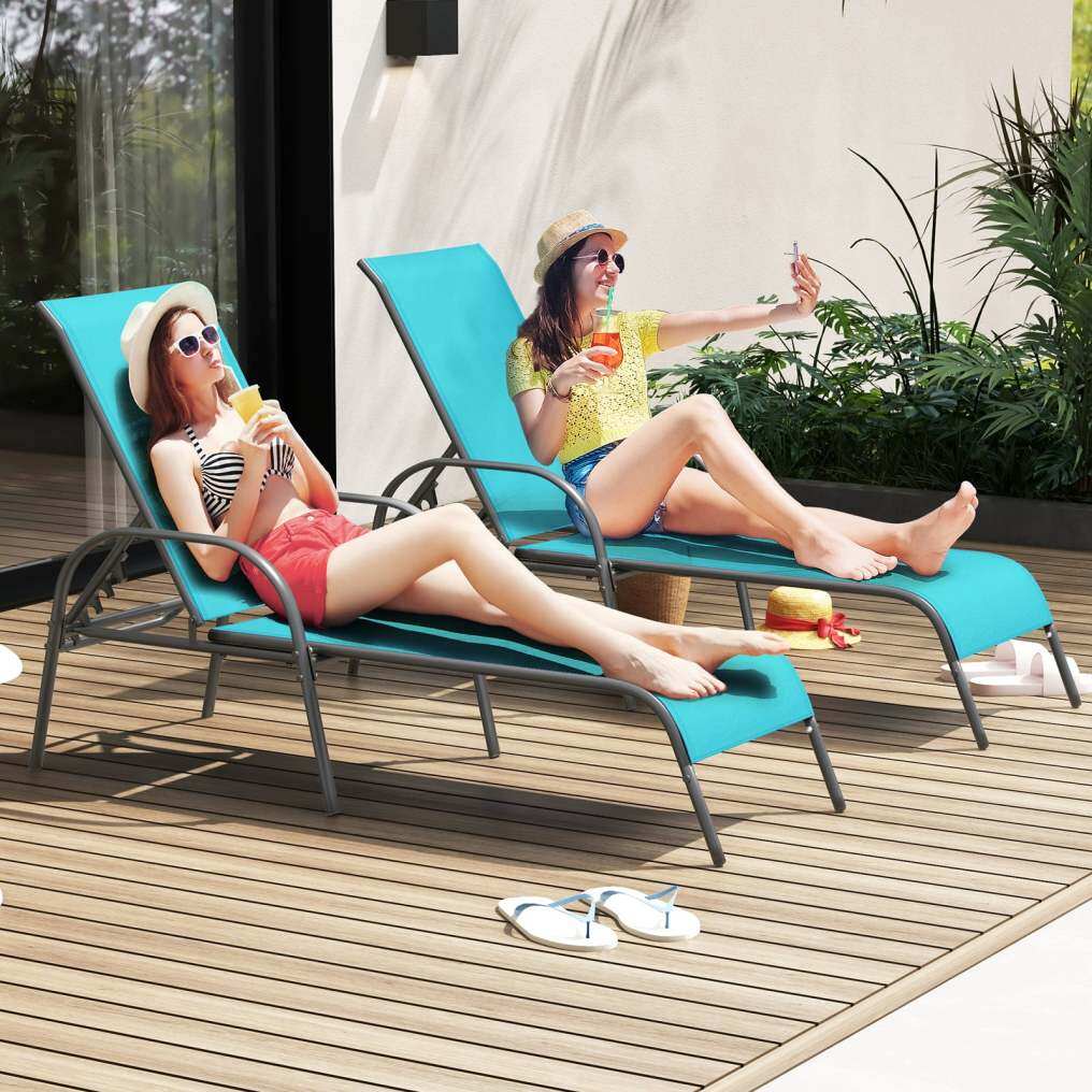 2 Pieces Outdoor Patio Lounge Chair Chaise Fabric with Adjustable Reclining Armrest-Turquoise Sourcing Wholesale Supplier/Distributor | B2B Marketplace
