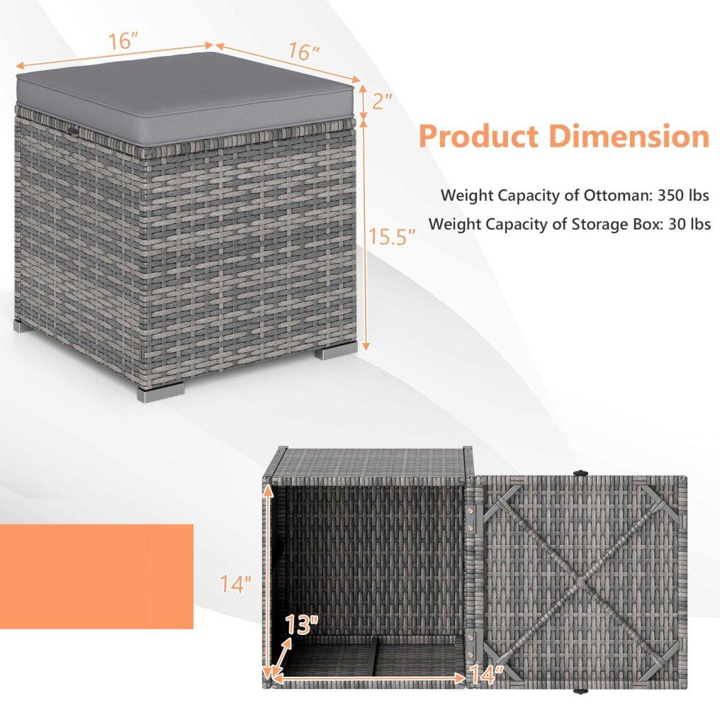 ● 4-in-1 Versatile Ottomans: This rattan ottoman not only provides a perfect place for you to relax your feet, but also can be used as an additional seat for the rattan sofa set. Also, the top lid can be flipped for storage. When the cushion is removed, the ottoman turns into a functional side table.