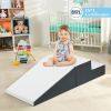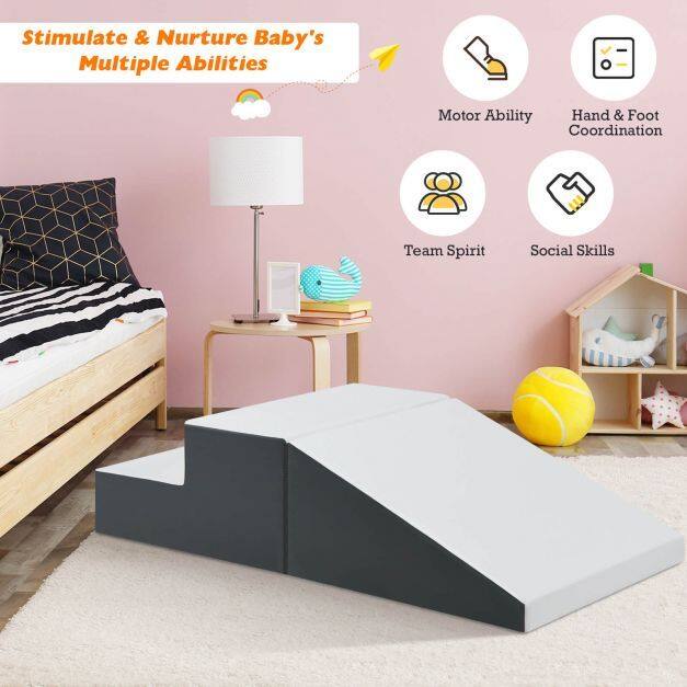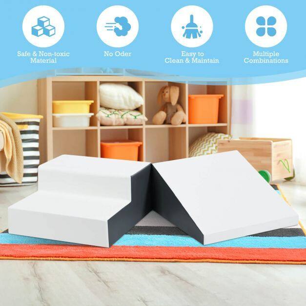 Your little one will love climbing, crawling and sliding on this 2-piece beginner climber set. Through the play, babies can develop gross motor skills, hand-eye coordination and gain confidence as they crawl up the steps and slide down the soft wedge. With the multiple-colour appearance, our foam set may become a captivating addition to any places, such as living room, bedroom and kindergartens. And the compact size and lightweight make it convenient for transfer from one room to another.