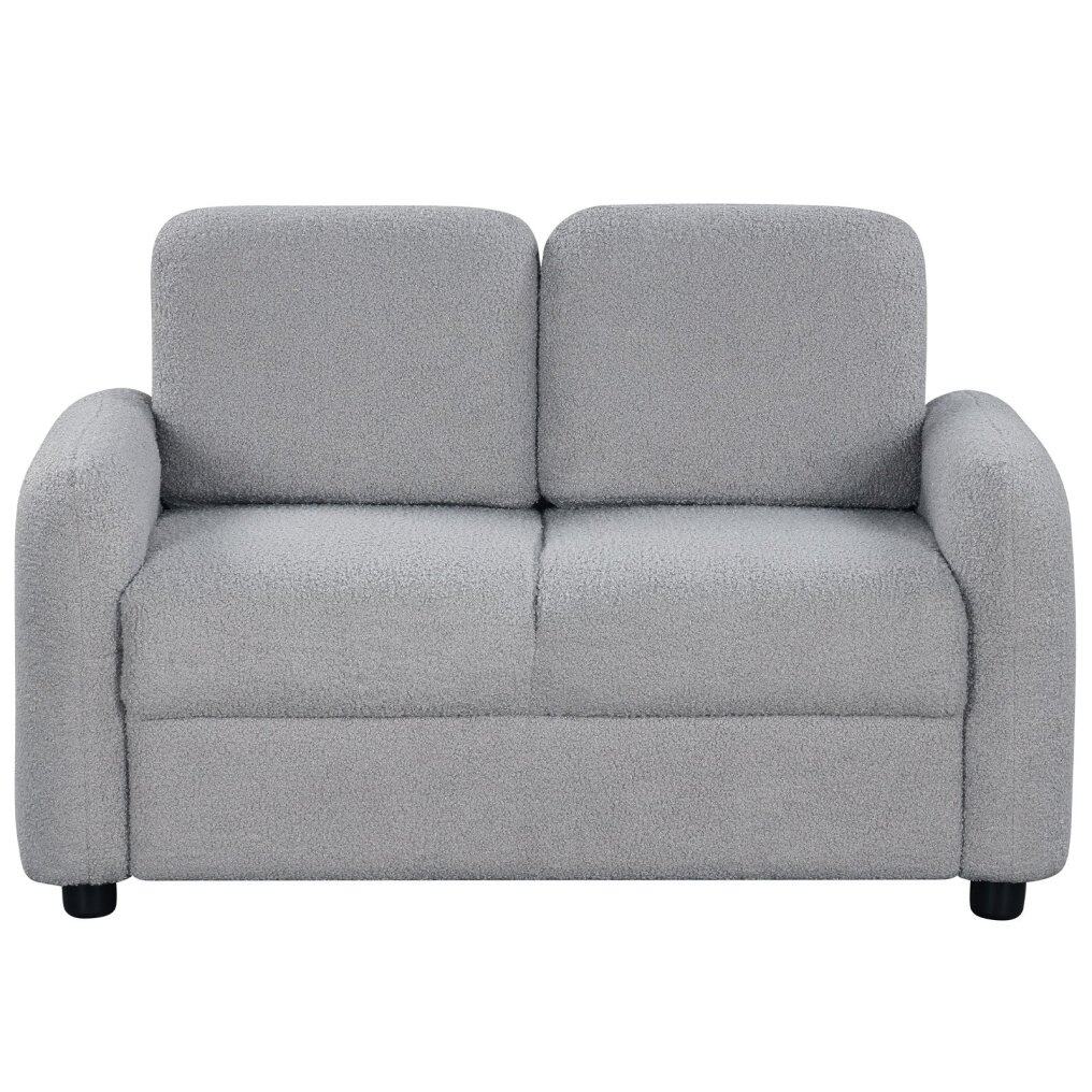 2-Seat Kids Sofa Toddler Sofa Couch with Soft Teddy Fleece Upholstery and Solid Wooden Frame-Gray