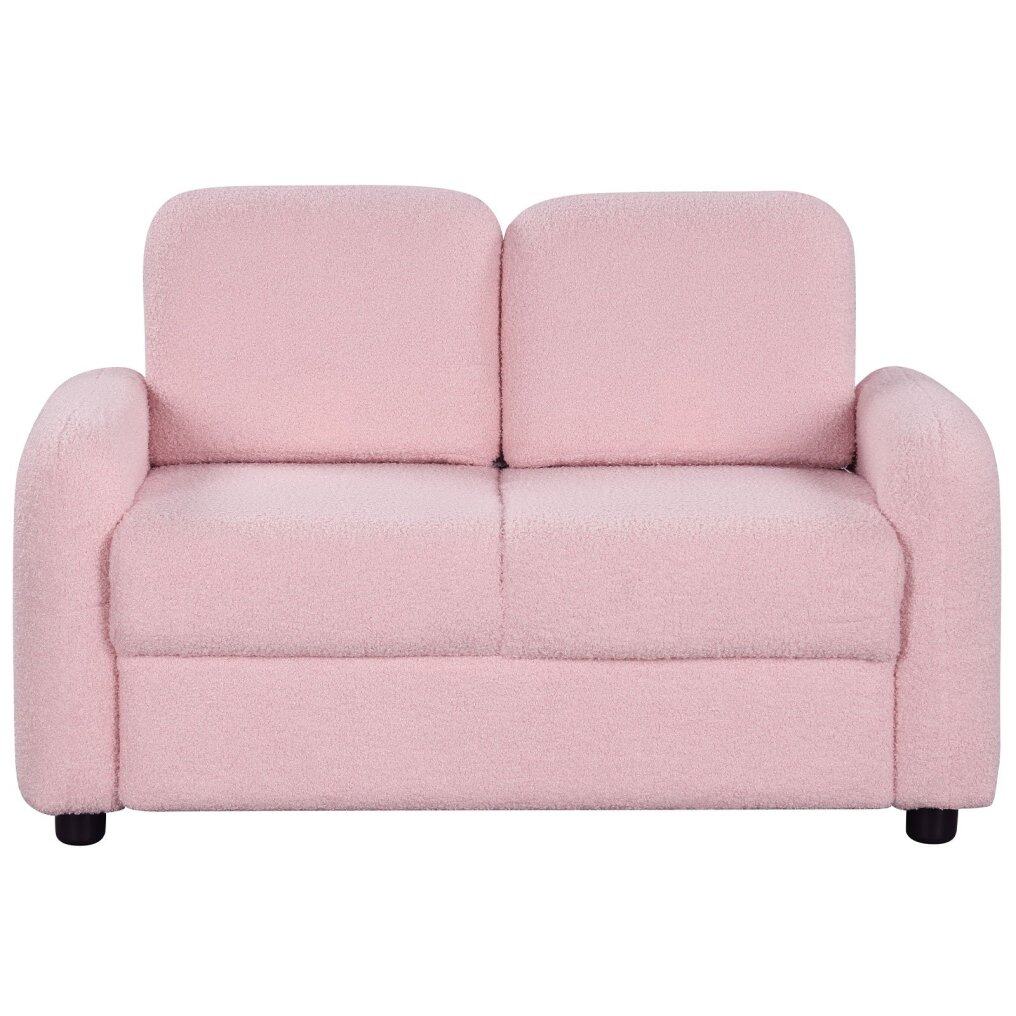 2-Seat Kids Sofa Toddler Sofa Couch with Soft Teddy Fleece Upholstery and Solid Wooden Frame-Pink