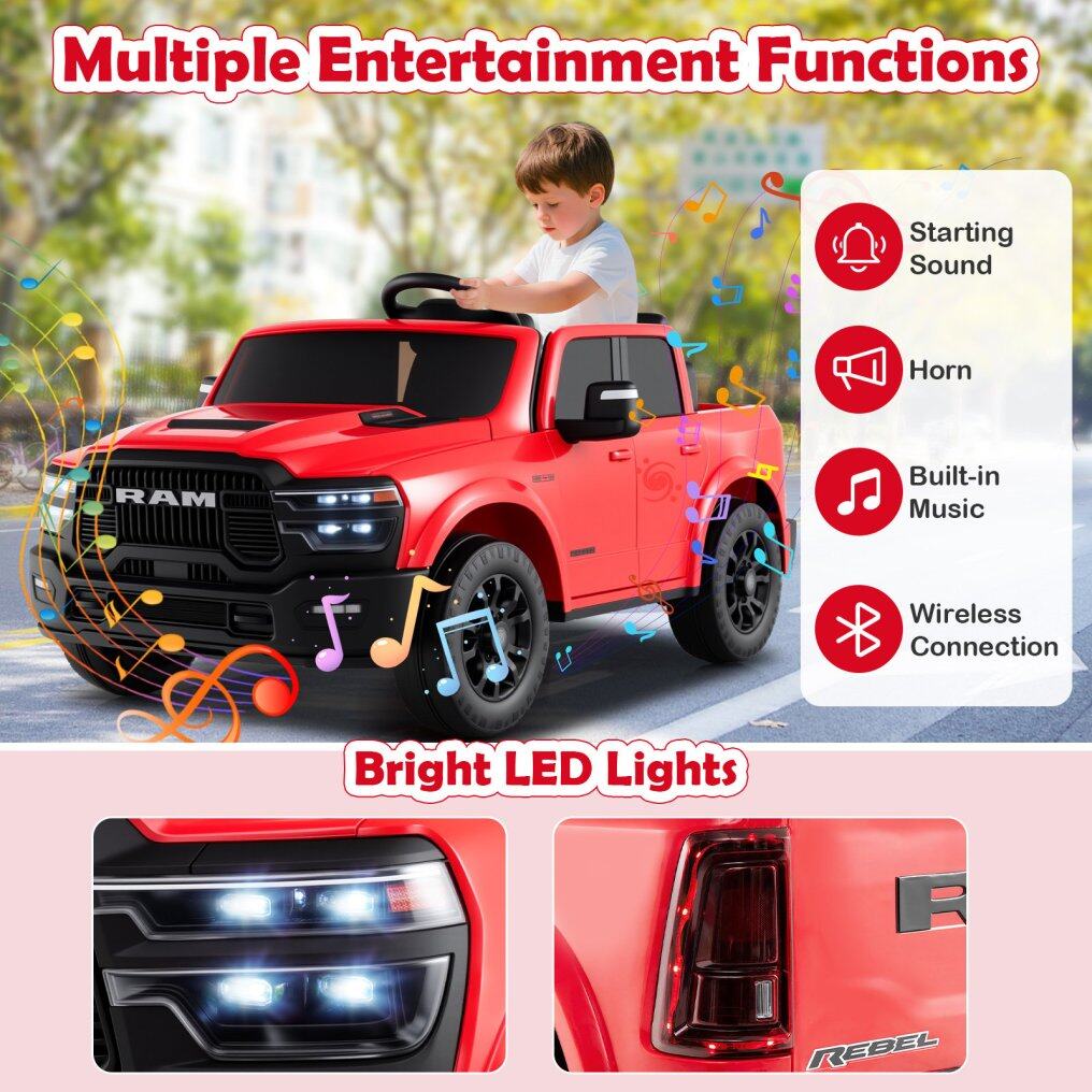● Licensed Ride on Truck: This licensed 2025 Ram 2500 REBEL ride on pickup truck boasts 2 × 100W motors, providing a 1.4-3.2 mph speed range to satisfy different needs. Powered by a 24V battery, the ride on toy keeps the adventure going on. Recharging is a breeze with the integrated charging port and included charger.