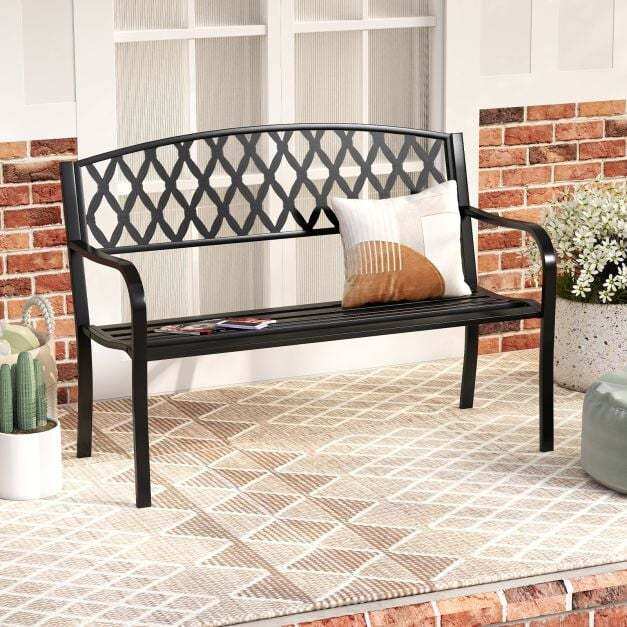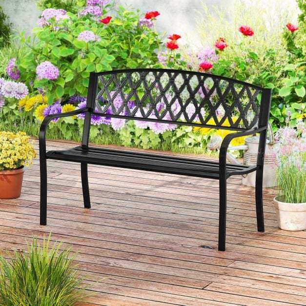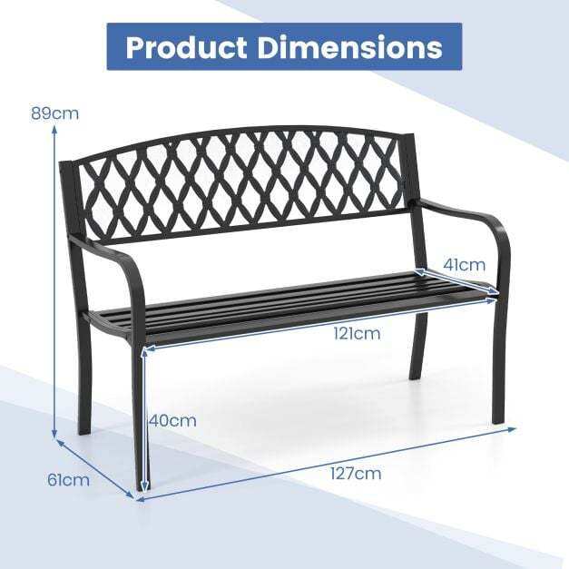 Fabulous Outdoor Addition: The stylish metal bench is a versatile fit for garden, patio or poolside area, combining aesthetic appeal with practical functionality. Overall dimension: 127 x 61 x 89 cm (L x W x H).