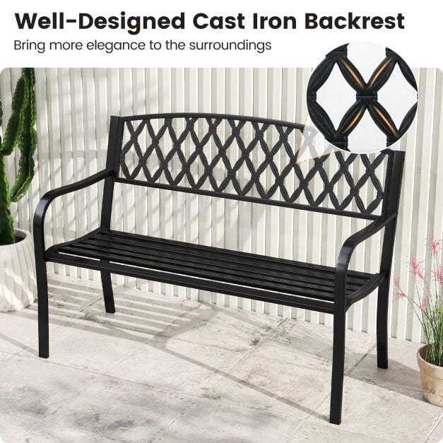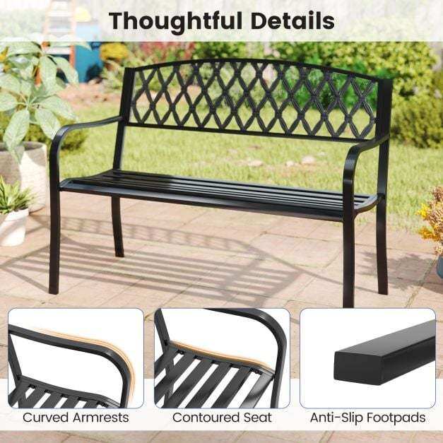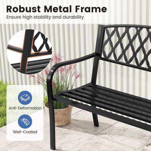 Robust Metal Construction: Supported by heavy-duty metal frame with well-coated finish, the loveseat bench is not easy to deform or warp, ensuring high sturdiness and long-lasting outdoor use. And the non-slip footpads ensure higher stability.