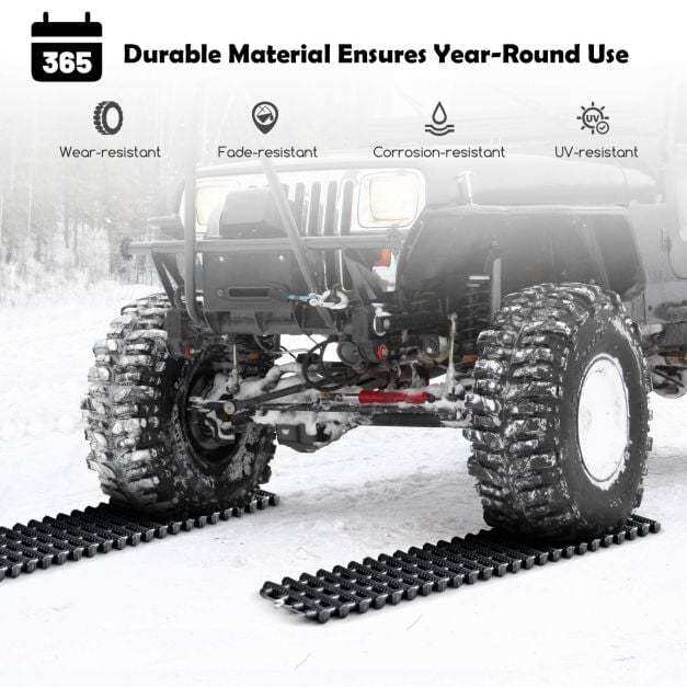 High Strength TPR Material: The recovery tracks are made of high strength TPR material and connected by a stainless steel core to provide excellent grip and durability. This means your vehicle can regain traction and maneuver out of difficult situations.
