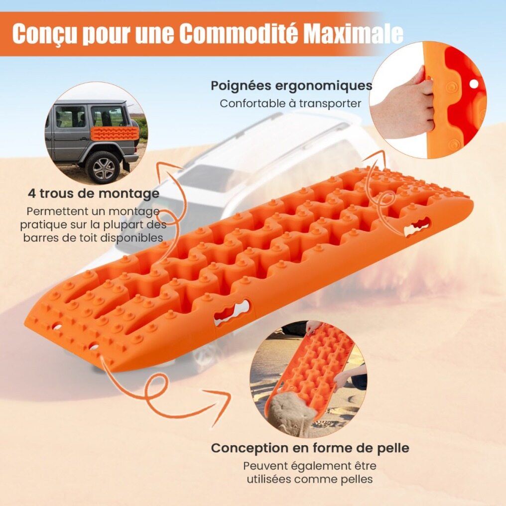 DESIGNED FOR MAXIMUM CONVENIENCE: The traction rail is equipped with pre-drilled holes to easily pull it out of mud, snow, sand, etc. And the ergonomic handle makes it easy to carry. With a unique shovel design, it can also be used as a shovel if necessary.