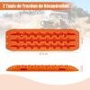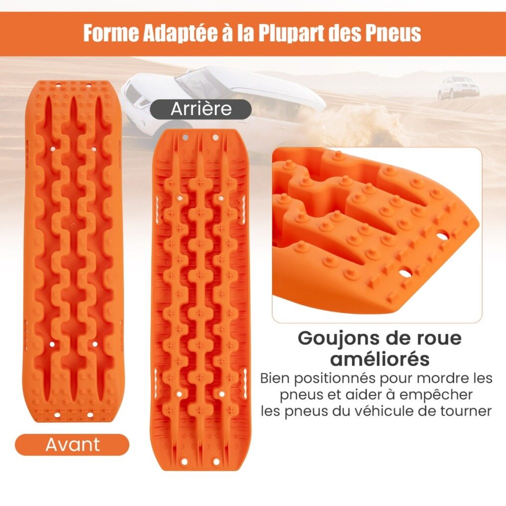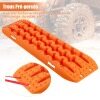 The package includes 2 off-road traction boards. Made from strong but lightweight nylon material, each recovery traction rail can hold up to 10 tons and withstand extreme temperatures from -30°C to 60°C. This heavy-duty traction mat is also super flexible, pliable and doesn't break easily. Both sides of the tire ladder are equipped with lugs and teeth to increase the friction between the tire and the ground to prevent the vehicle tires from spinning.
