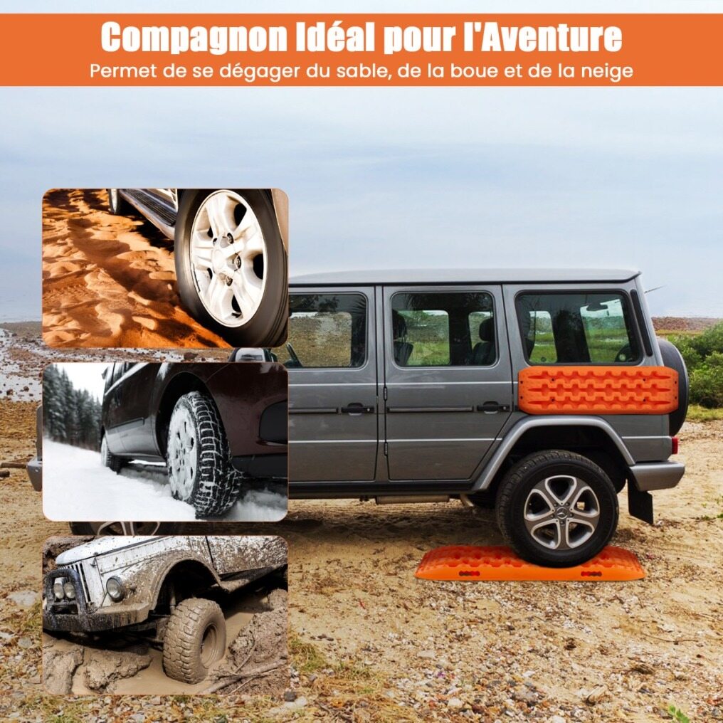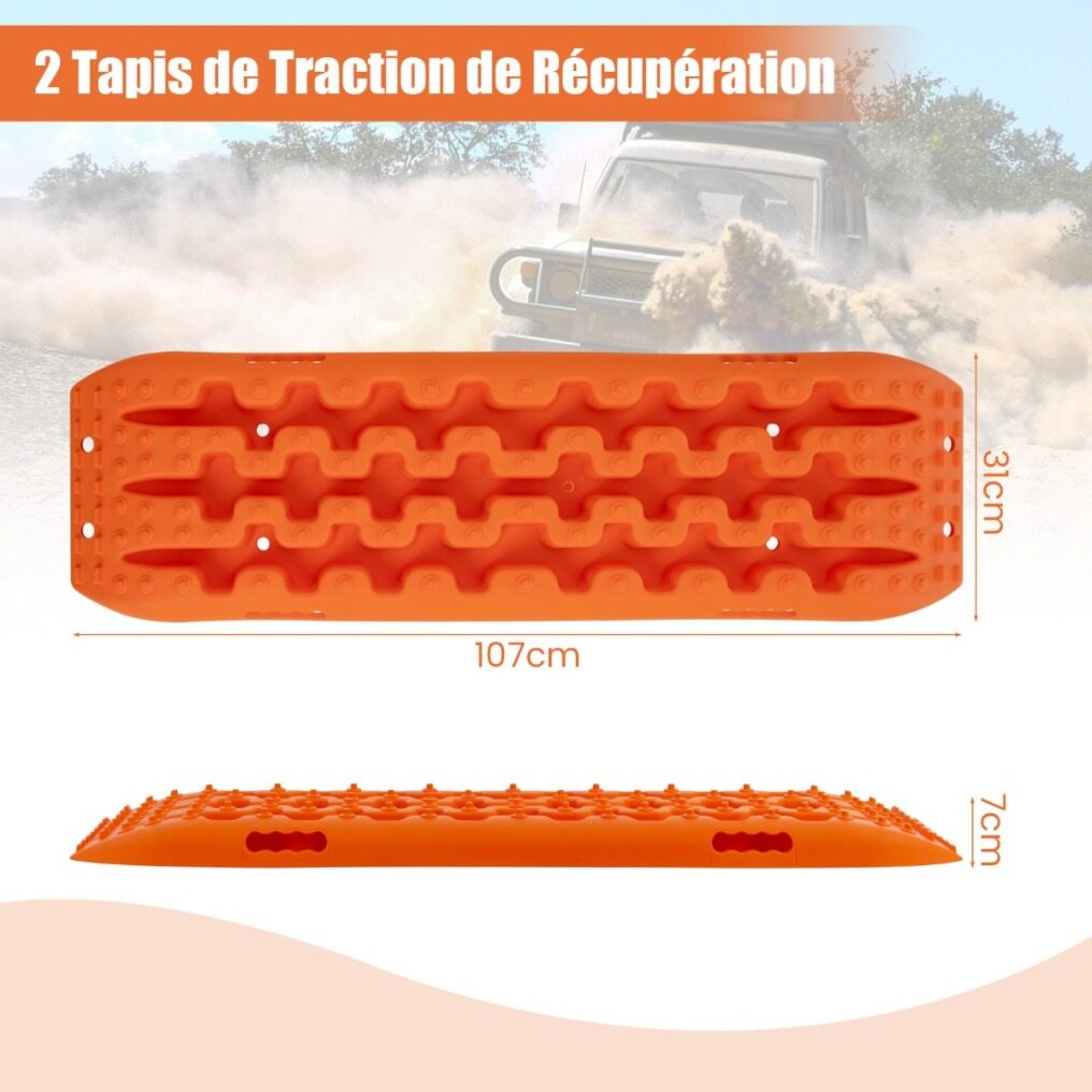Versatile Traction Mats for Recovery: Each traction mat measures 107 x 31 x 7 cm (L x W x H) and is contoured to fit most tires. The scope of delivery includes 2 traction mats, which together weigh 5.5 kg. The front and rear of the traction mat are equipped with improved wheel studs that are well positioned to engage the tires and prevent the vehicle tires from spinning.