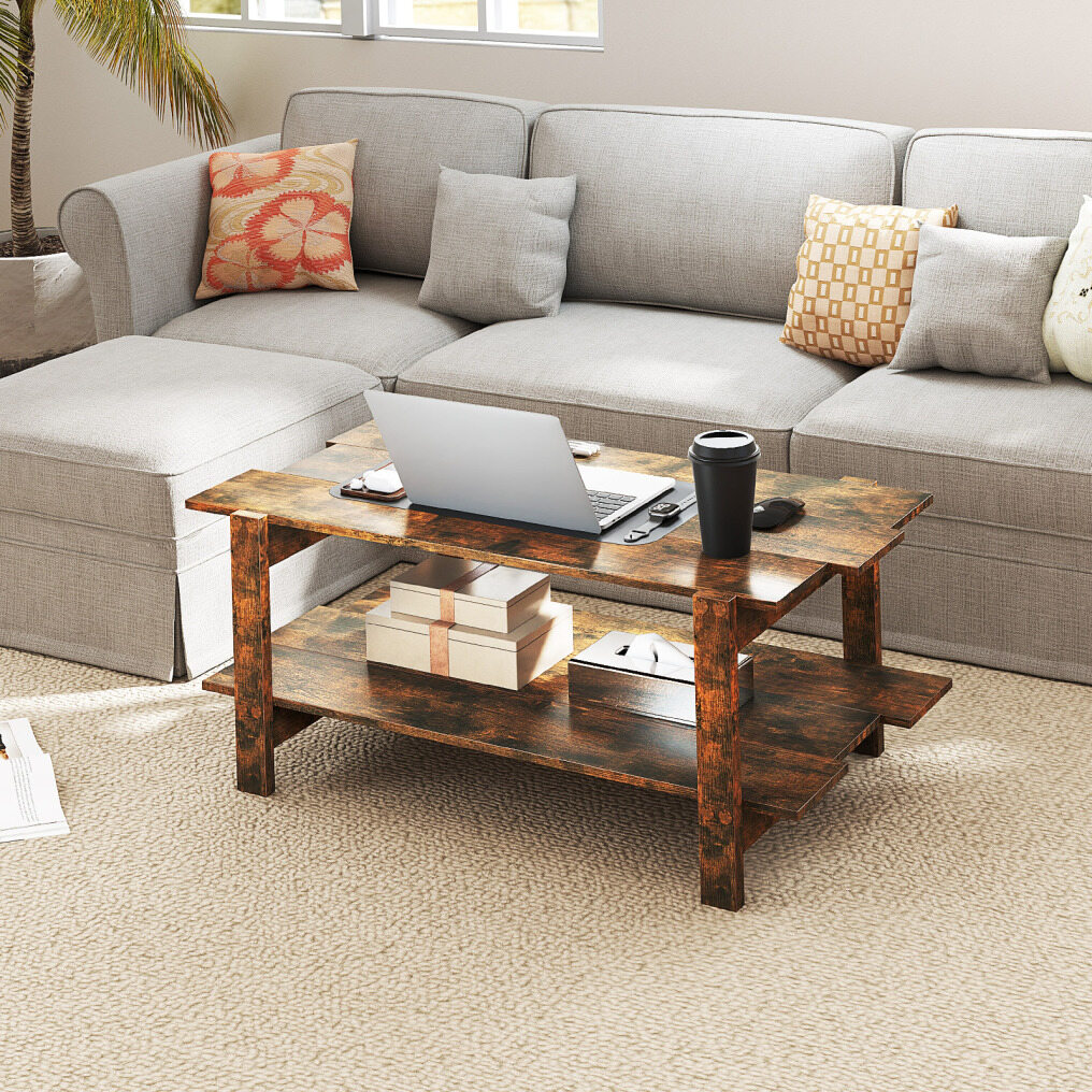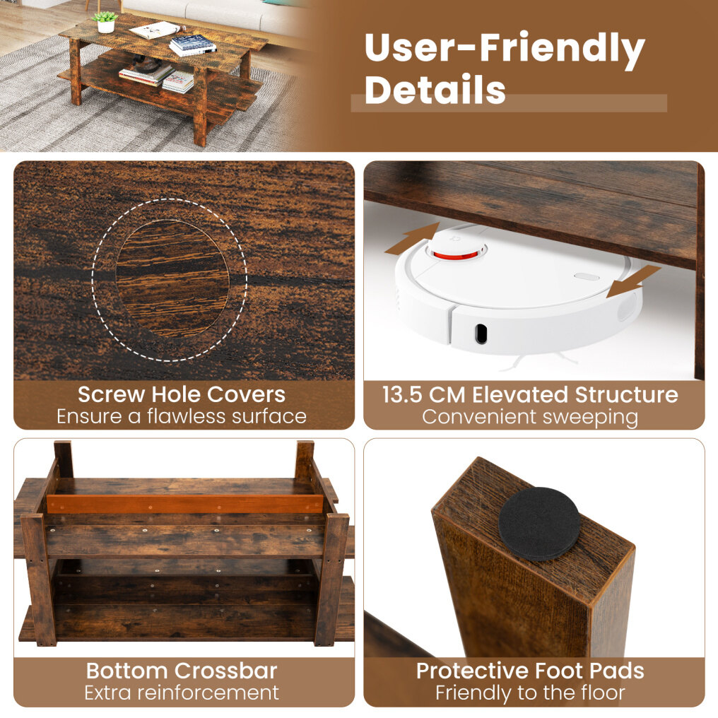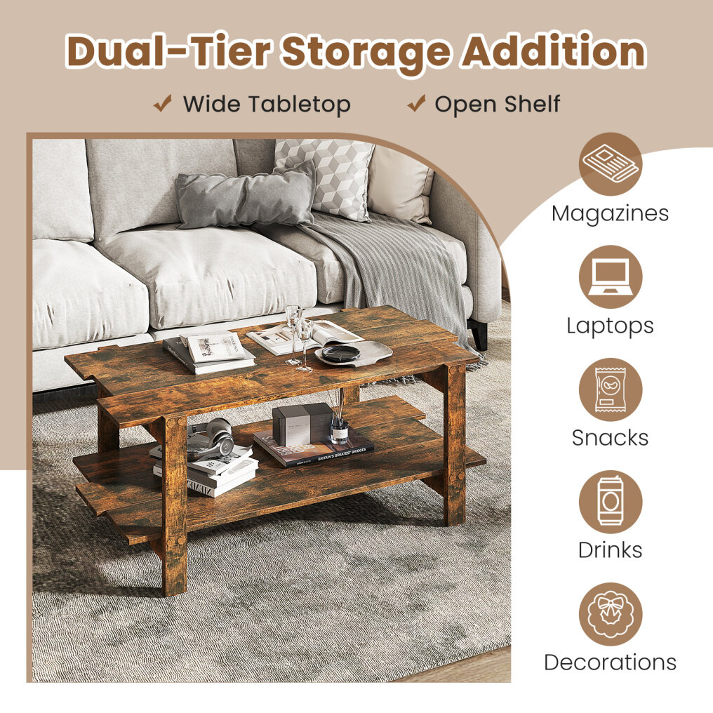 This stylish coffee table offers a 2-tier storage design, ideal for displaying laptops, magazines, drinks and decorations. Crafted from sturdy wood, it supports up to 120kg and features a decorative slatted top with screw hole covers for added elegance. Versatile for homes, reception rooms and more, this center table is a functional and stylish addition to any room.