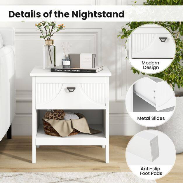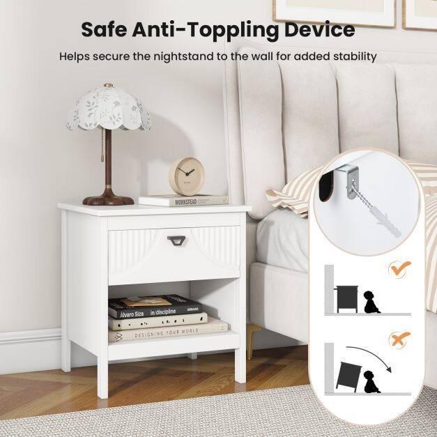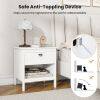 Enhance your living space with this side table boasting an elegant design that effortlessly complements various decoration styles. The faux cutout design on the drawer fronts adds a touch of class to the overall aesthetic. Enjoy the convenience of private drawers and open shelves, providing ample storage space for personal items, books, plants, and decorative pieces. Details of the nightstand showcase sophisticated workmanship: the stable structure features non-slip foot pads to prevent scratches and sliding, along with an anti-toppling device for added safety. Perfect for compact spaces, this coffee table can easily fit between sofas or beside your office desk. The smooth surface offers excellent water resistance, making cleanup a simple task. Seamlessly transition this multifunctional table from the living room to the bedroom as a nightstand, showcasing its versatility.