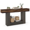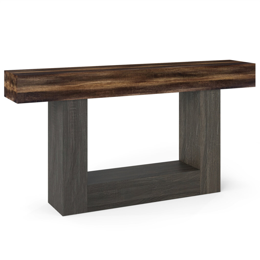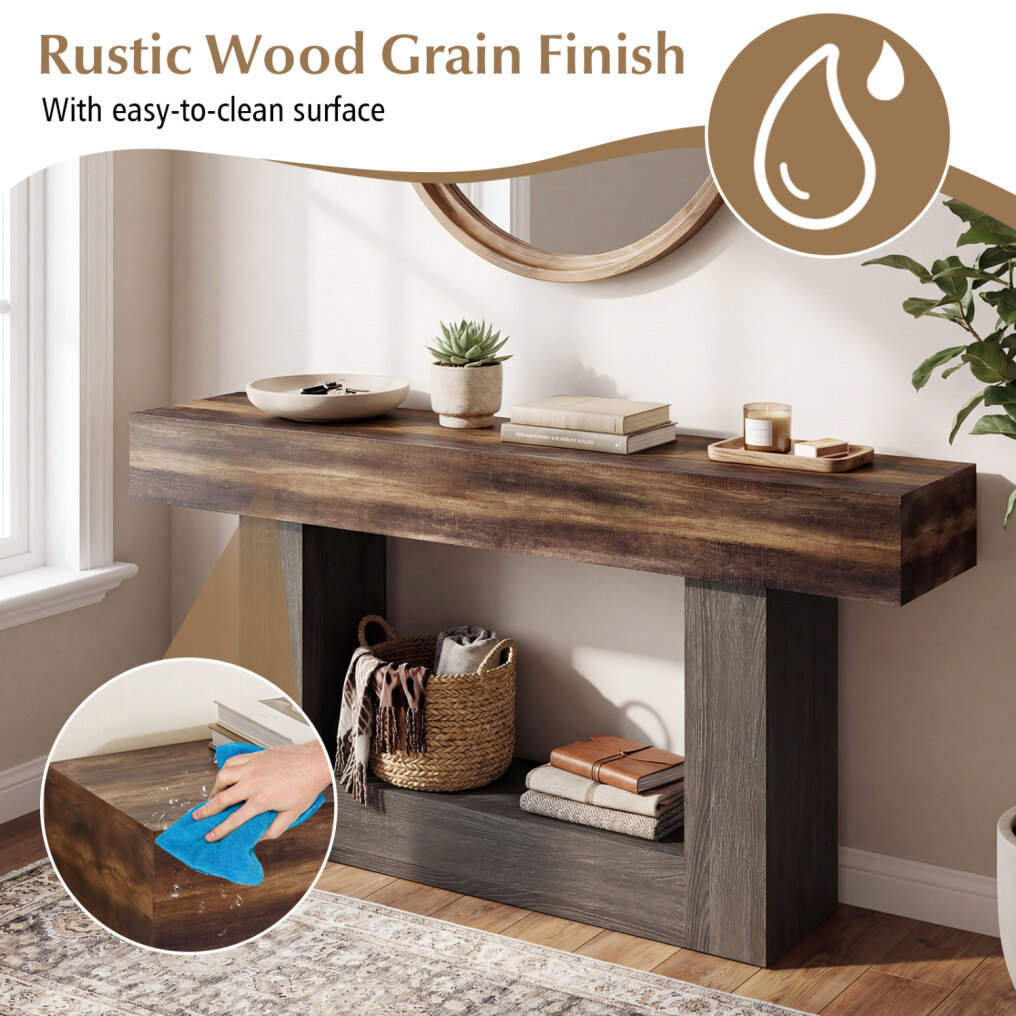 ● Rustic Industrial Aesthetic: The foyer table showcases a rustic wood finish that beautifully blends rustic warmth with industrial durability for a timeless, versatile look. Its smooth surface ensures effortless cleaning and maintenance, keeping the table looking attractive for years to come.