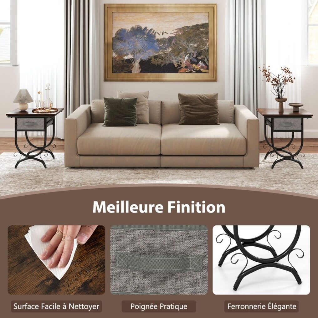 Large Storage Space: Our nightstand has a rectangular tabletop for coffee mugs, remote controls, desk lamps or phones. Additional fabric drawer is perfect for your personal items, and the drawer can be folded to store when not in use.