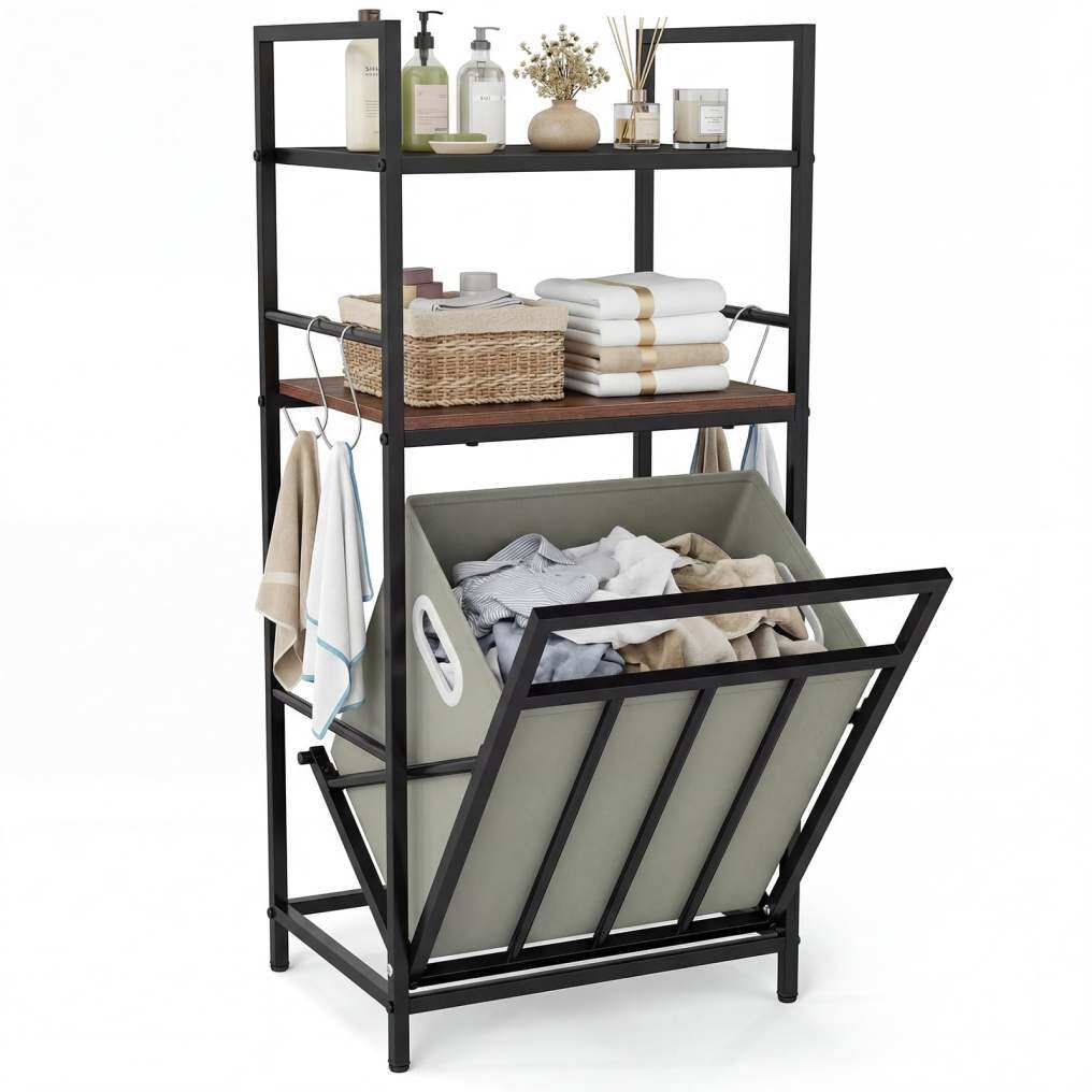 ● Space-Saving Tilt-Out Design: Equipped with a 45° tilt-out basket and secure tilt rack stoppers, this laundry sorter maximizes your space and allows easy access to laundry. The removable laundry bag is also foldable for effortless cleaning and storage.