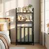 ● Rustic & Industrial Aesthetic: Featuring an elegant fusion of black metal and natural wood grain, this bathroom storage cabinet enhances aesthetic of your living space. The wooden shelf can be wiped clean quickly, making maintenance simple.