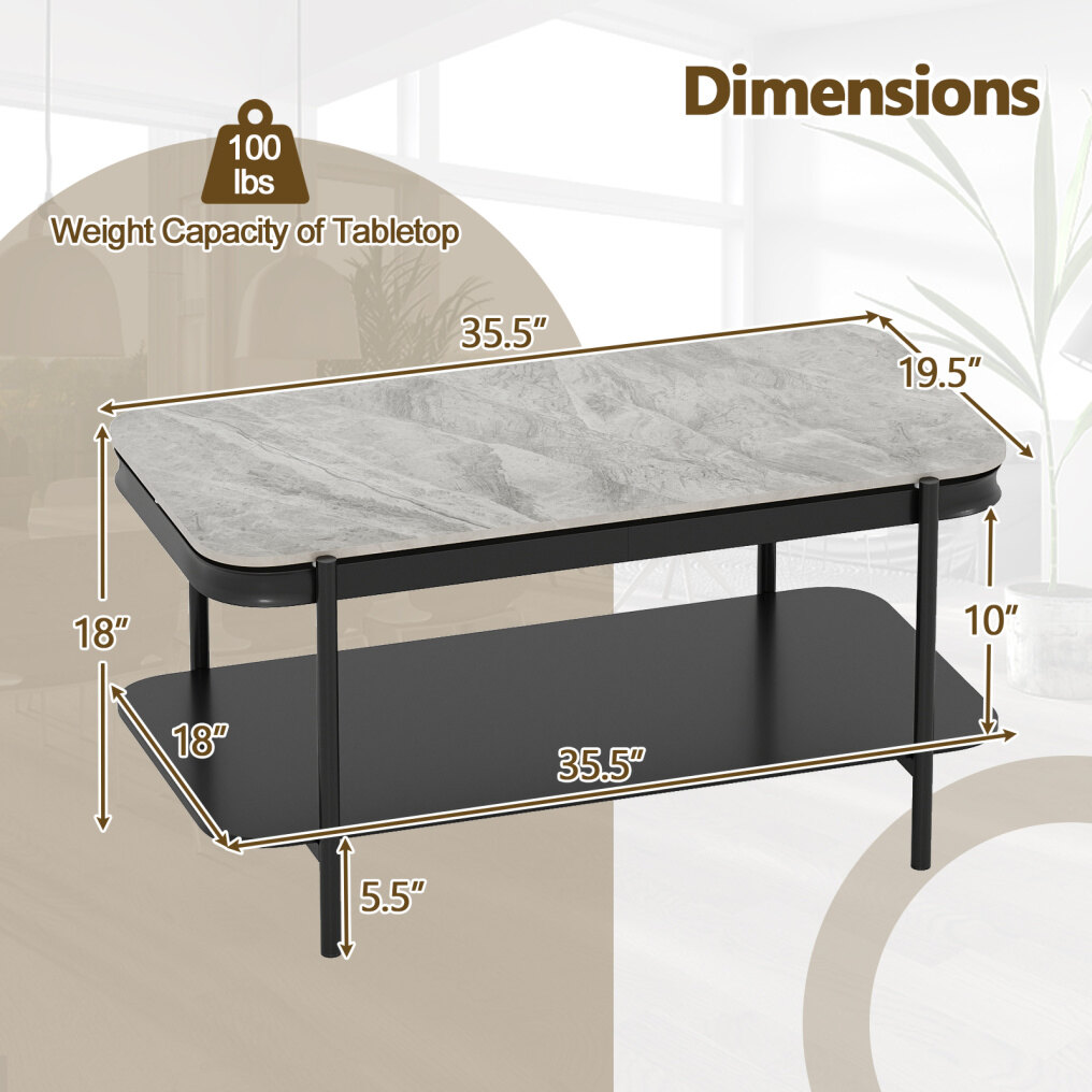 ● High-quality Sintered Stone Tabletop: The rectangular coffee table showcases a marble-veined sintered-stone surface that repels water, scratches, and heat, ensuring it stays flawless for daily coffee breaks and lively gatherings. Its luxurious sheen instantly upgrades your living space, drawing every eye.