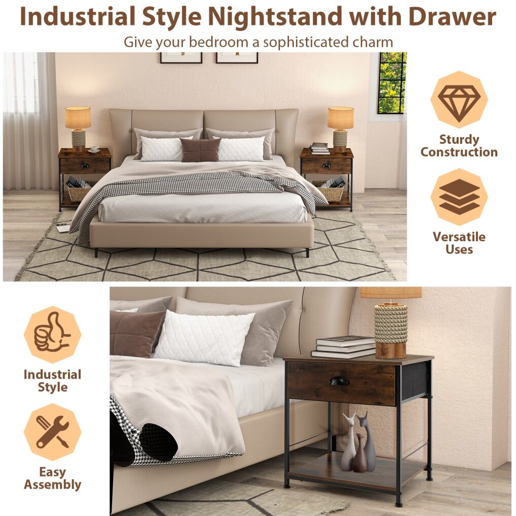 Are you looking for a suitable nightstand for your bedroom? This industrial style 2-tier nightstand is a good choice for you. It can be used not only as a bedside or sofa side table, but also as a double storage unit anywhere. It has a table top, 1 drawer and 1 open shelf where you can choose to display your collection or store books or magazines. The heavy-duty metal frame provides a large weight capacity of up to 45kg. In addition to this, the adjustable feet add stability to the table. Suitable for living room, bedroom or any small space! This side table will add a modern and glamorous touch to your room. If you are looking for a nightstand like this, do not hesitate to place an order!