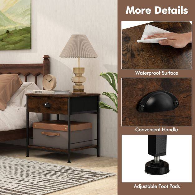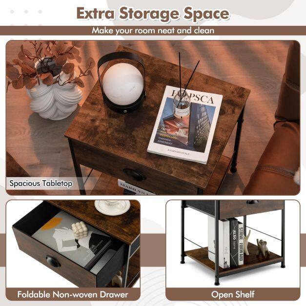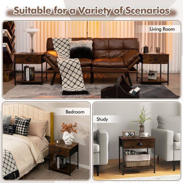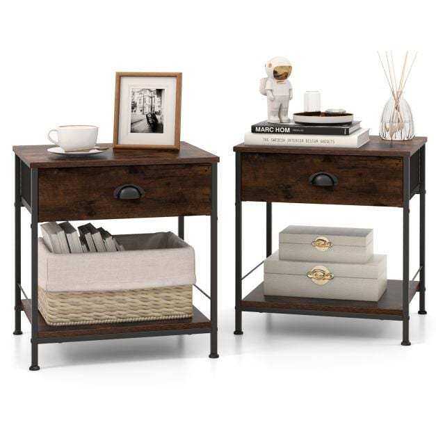 ● Private Drawers and Open Shelves: This side table will bring you extra storage space! The table top is great for picture frame or other decorative items, while the drawers can store personal items. The lower shelf is perfect for books or potted plants. And there is no doubt that a side table with storage will keep your room neat and tidy.