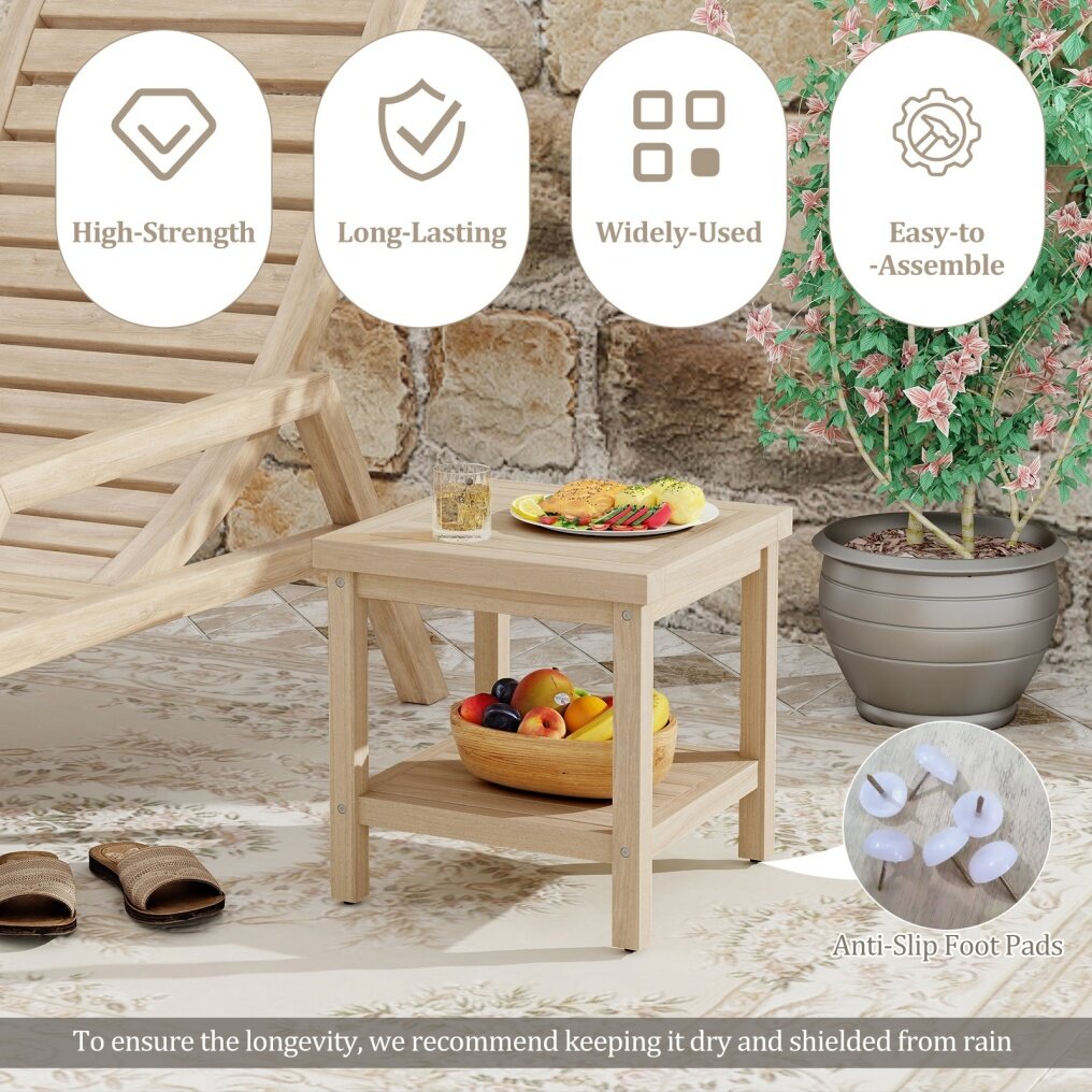 ● 2-Tier Storage Option: For generous storage choices, the patio side table features a dual-tier design. The upper surface is perfect for holding drinks and phones, while the lower shelf offers extra space to organize books, snacks, or other essentials.
