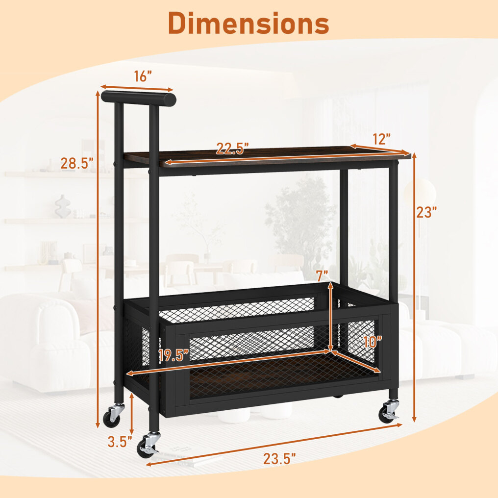● Easy to Move: The 4 universal casters let the serving cart glide smoothly across hardwood, tile, or other surfaces, while 2 lockable wheels keep it anchored when needed. An integrated handle provides a secure grip, so this sofa side table with wheels transitions effortlessly from kitchen to living room.
