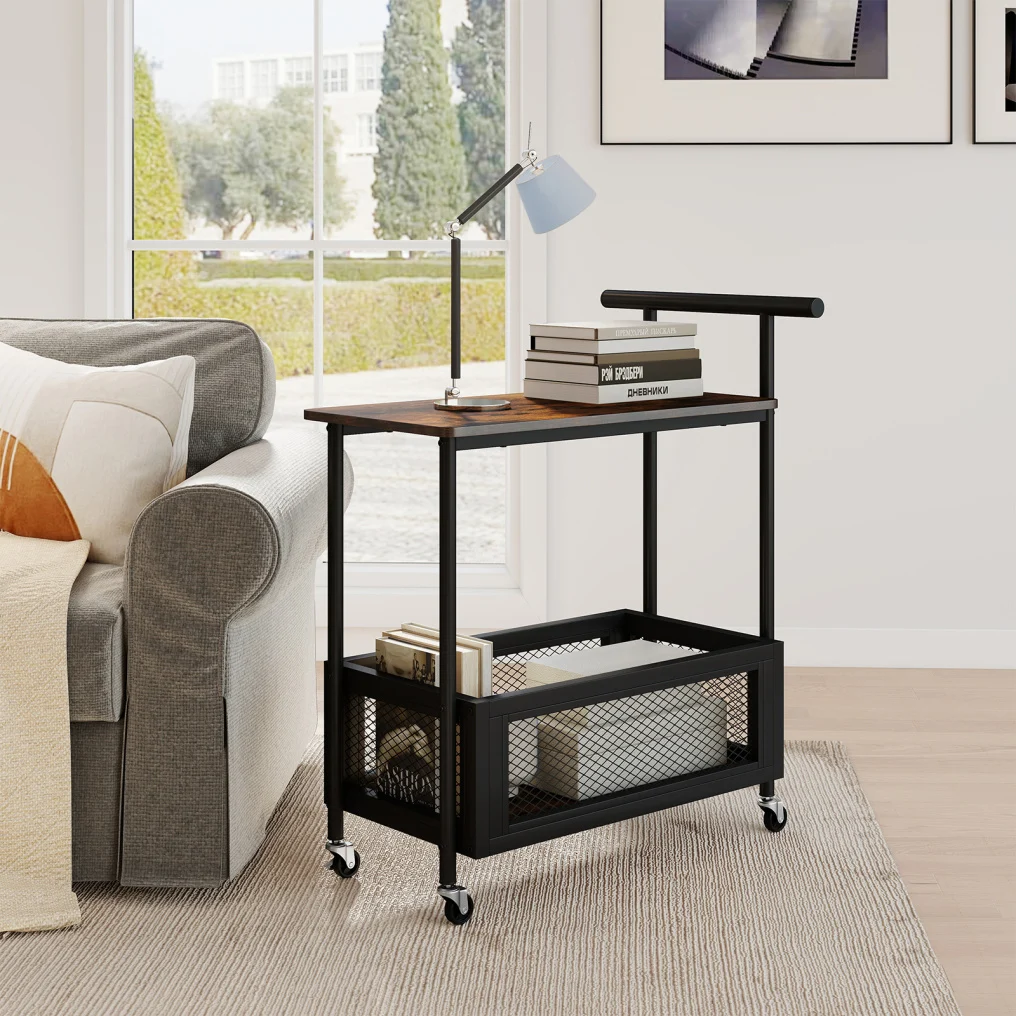 ● Ample Storage: The rolling end table features a 2-tier storage space that easily accommodates snacks, drinks, books, and everyday sundries. Its open-shelf design keeps essentials visible and within arm's reach while you relax on the sofa.