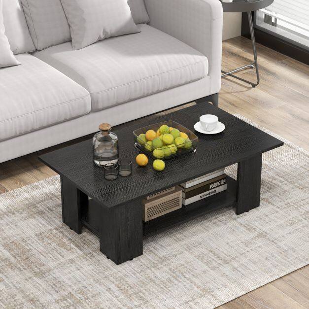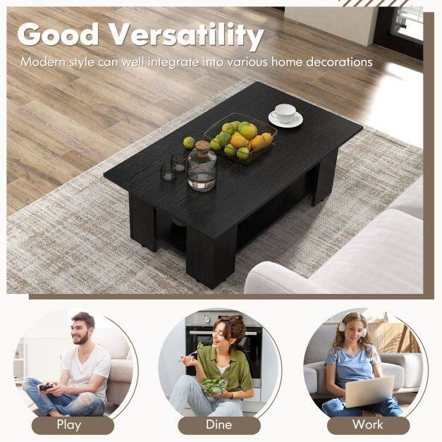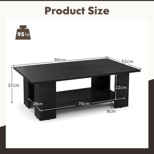 This modern coffee table is an ideal choice for you if you are picking out furniture for your living room. The elegant colour and clear lines give it a stylish look while the quality plates and strong connections make it a solid structure. Moreover, the supportive legs can withstand over 200 pounds. The open shelf of the coffee table provides extra storage space: you can place snacks, magazines, game consoles and stereos on the storage shelves. It will be a practical and beautiful addition to your living room, as well as make your room neat and tidy! If you are looking for a coffee table like this, do not hesitate to place an order!