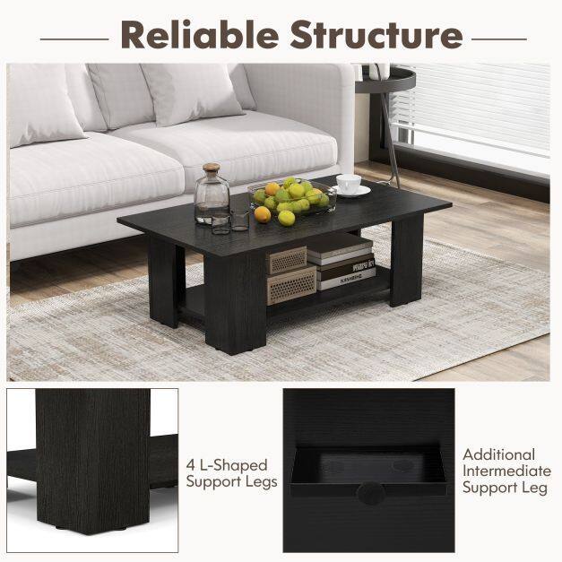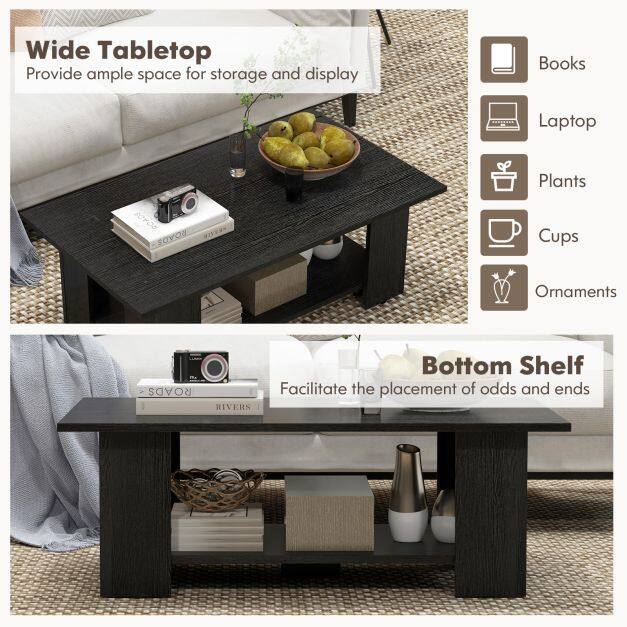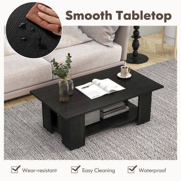 2-Tier Design to Enlarge Storage: This modern coffee table comes with a wide tabletop and an open bottom shelf that provide you with sufficient space to classify and display multiple items, such as cups, vases, magazines and other ornaments. With the help of our coffee table, you will no longer be bothered about messy room.