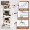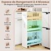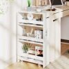 【Smart 4-Tier Organization】This narrow, 4-tier cart features a convenient top area and 3 open shelves at different heights, easily accommodating everything from jars to bottles. Anti-fall guardrails keep items stable and secure while allowing quick access to your stored belongings.